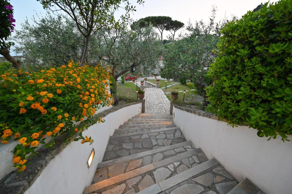 Hosté mohou využívat pečlivě udržované zahrady, bazény a relaxační zóny. Bazén obklopuje nádherný citrusový háj se stoletými pomerančovníky a citronovníky. K dispozici jsou lehátka s panoramatickým výhledem na moře a městečko Sant'Angelo.