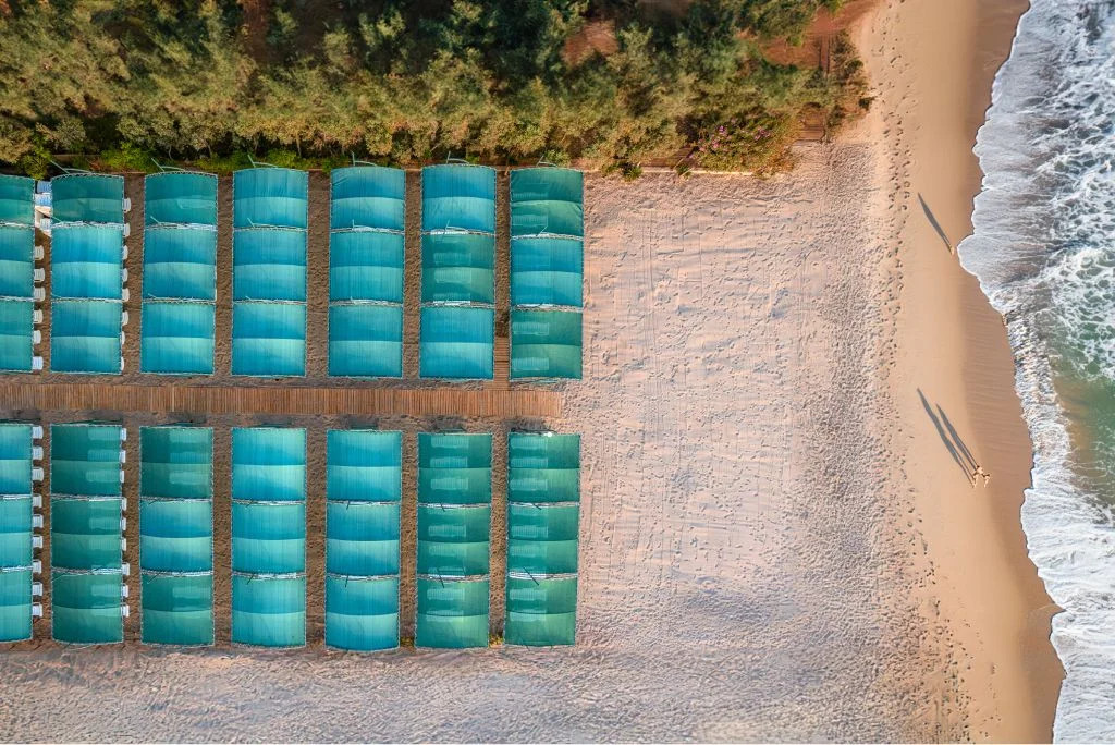 Pláž se nachází přibližně 150 m od hotelu a je hotelová, písčito-oblázková s pozvolným vstupem do moře. Hosté mohou zdarma využívat lehátka, osušky a slunečníky, matrace jsou k dispozici za poplatek přibližně 1,5 EUR, a k dispozici je také bar All inclusive. Pláž je oceněna prestižní značkou Modrá vlajka.